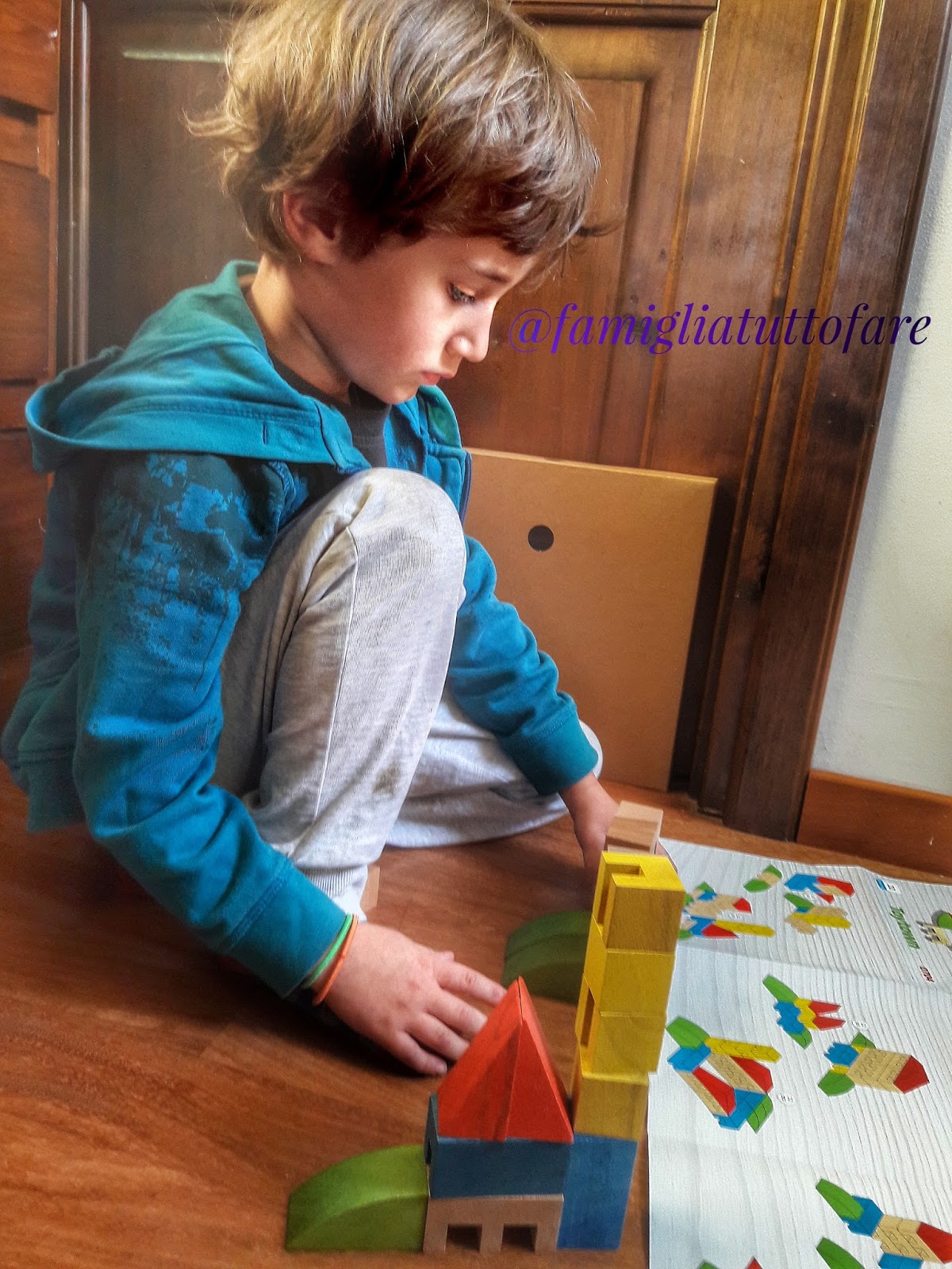Con questo gioco il bambino può esprimere tutta la sua creatività e il suo ingegno, è infatti un gioco volutamente senza struttura, composto da dei pezzi di legno di forme e colori differenti, che possono essere usati per costruire edifici, piste, torri, qualsiasi soggetto che la fantasia dei nostri bimbi riuscirà a creare.