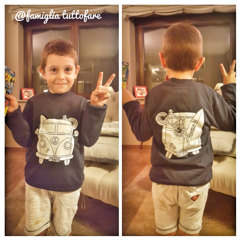Ci piace molto l’idea originale di rendere un capo per la scuola personalizzabile dal bambino, lasciando spazio alla sua fantasia ed inventiva.